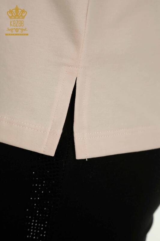 Chemisier Femme En Gros Col V Pierre Logo Brodé Poudre Légère - 79564 | KAZÉE
