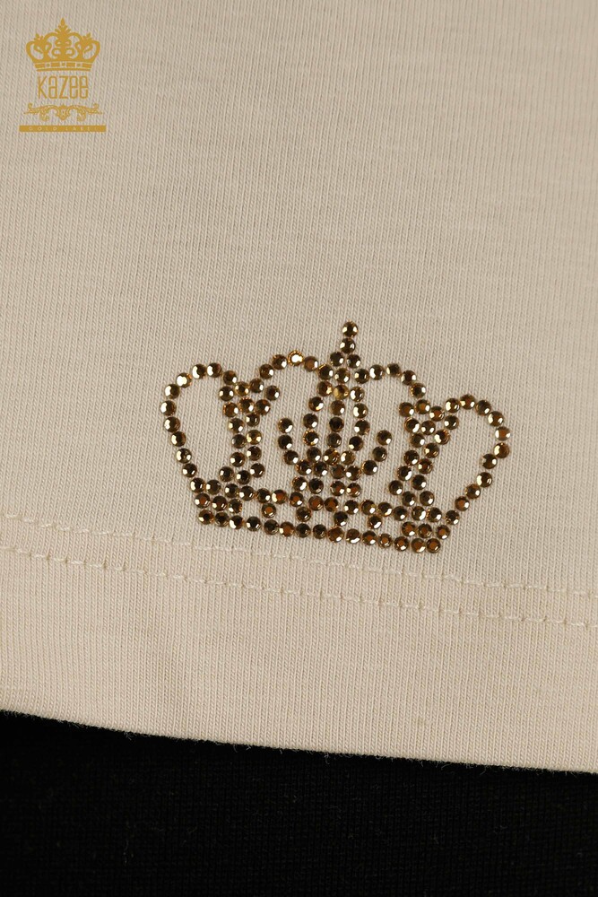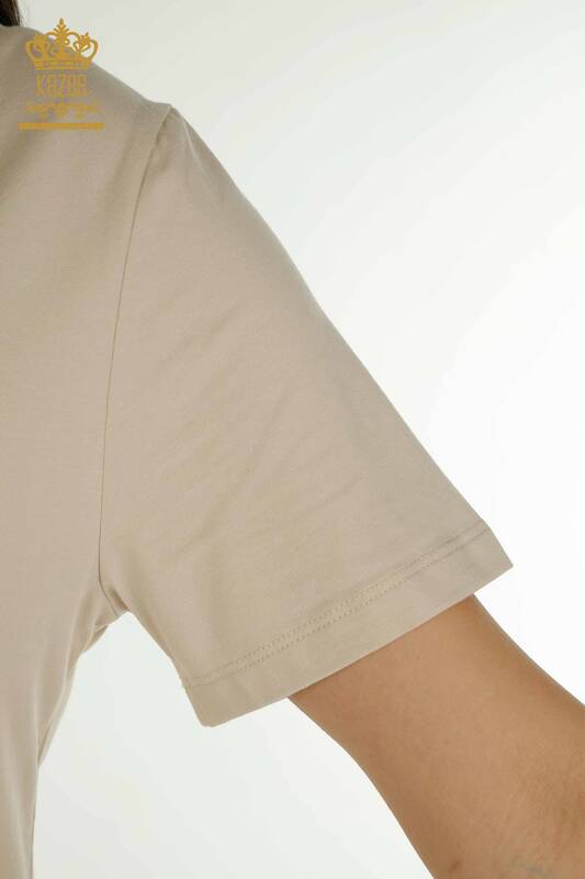 Chemisier Femme Col V Pierre Brodée Logo Beige Clair - 79564 | KAZÉE