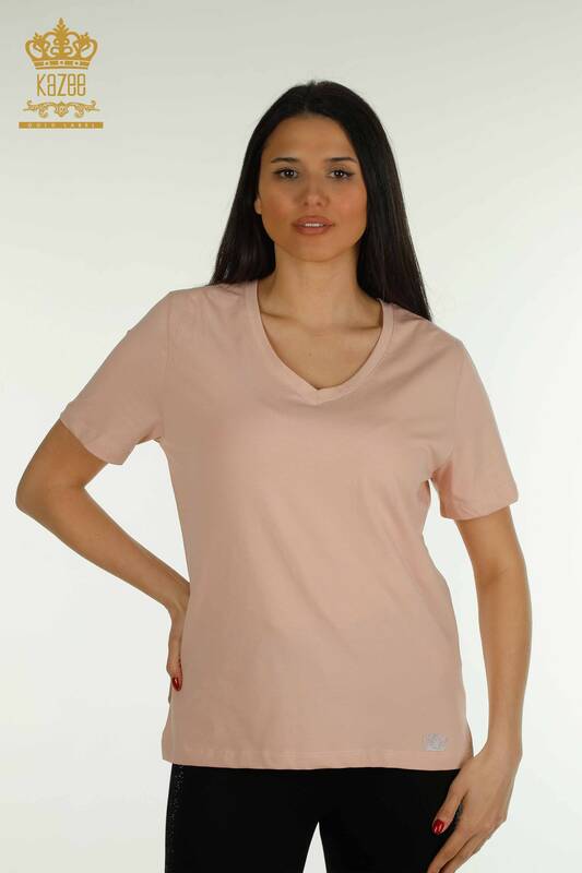 Chemisier en gros pour femmes col en V pierre logo brodé poudre - 79564 | KAZÉE