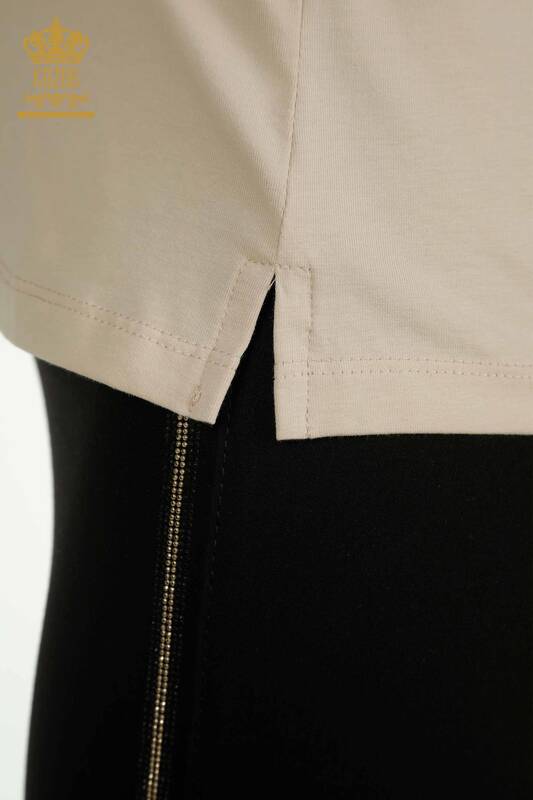 Chemisier Femme En Gros Brodé Floral Pierre Brodée Col V Beige Clair - 79466 | KAZÉE