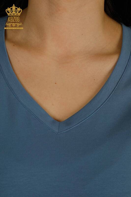 Chemisier Femme En Gros Manches Courtes Pierre Brodée Col V Indigo - 79561 | KAZÉE