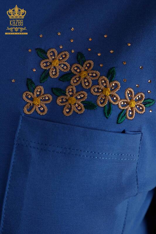 Chemisier en gros pour femmes, poche, fleur détaillée, à motifs, pierre brodée, Saks - 79477 | KAZÉE
