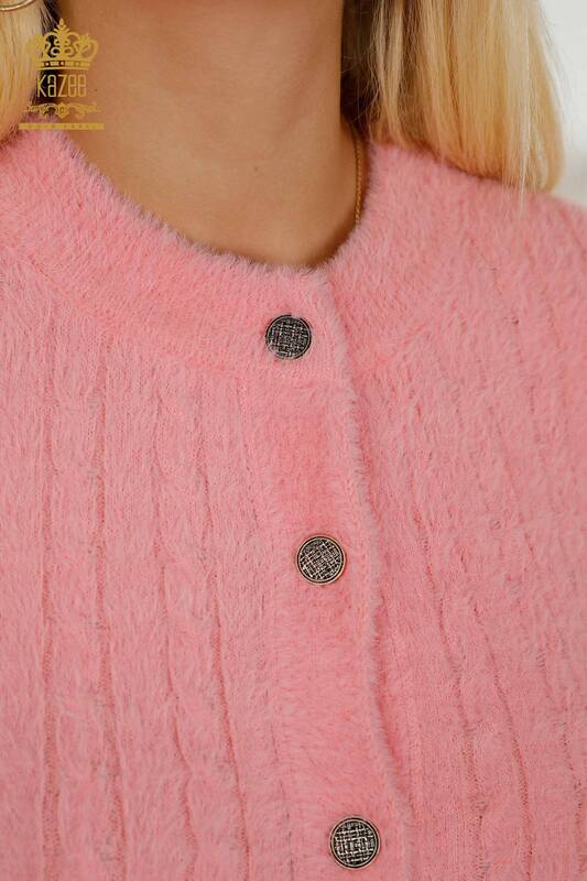Gros Cardigan Femme Angora Tissé Rose - 30321 | KAZÉE