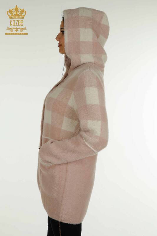 Cardigan Long Femme En Gros À Carreaux Angora Deux Poches Poudre - 30208 | KAZÉE