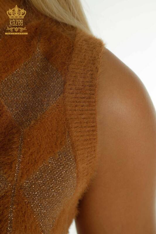 Cardigan sans manches zippé pour femmes en gros Angora Tan - 30211 | KAZÉE