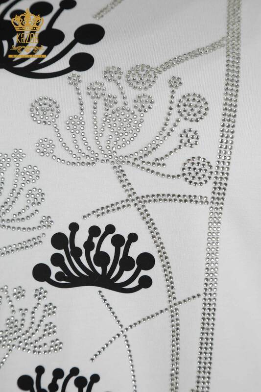 Chemisier Femme En Gros Pierre Brodée À Motifs Manches Courtes Col Rond Blanc - 79863 | KAZÉE