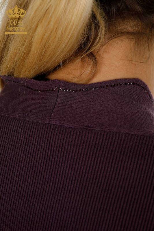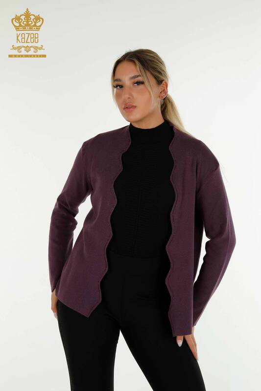 Gilet court pour femmes en gros pierre brodée violet - 30274 | KAZÉE