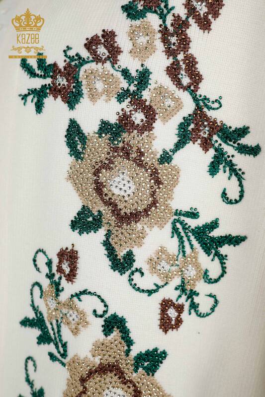 Gros Gilet Femme Fleur Brodée Pierre Brodée Ecru - 30644 | KAZÉE