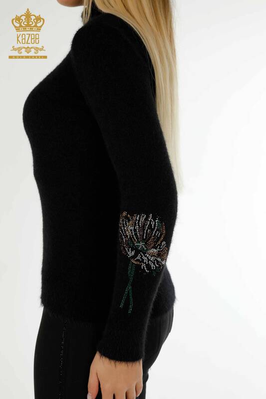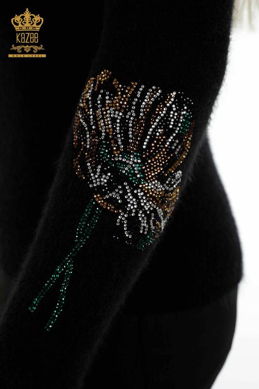 Pull en tricot pour femmes en gros pierre brodée Angora noir - 18899 | KAZÉE