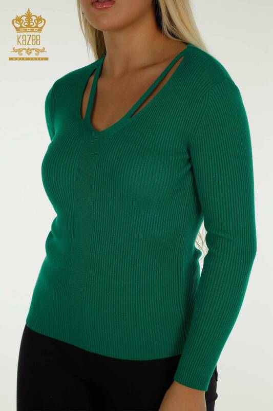 Pull en tricot pour femmes en gros avec détail de col Basic Green - 30392 | KAZÉE