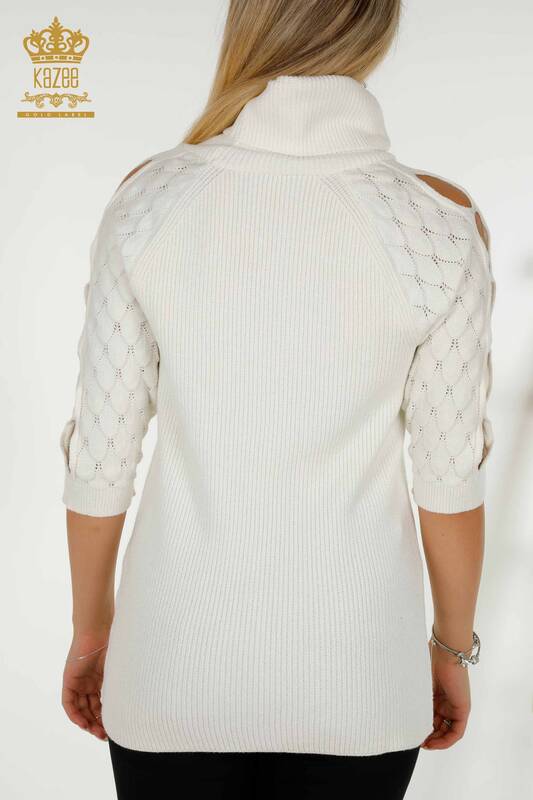 Vente en gros de tricots pour femmes pull à col roulé et manches détaillées écru - 30560 | KAZÉE