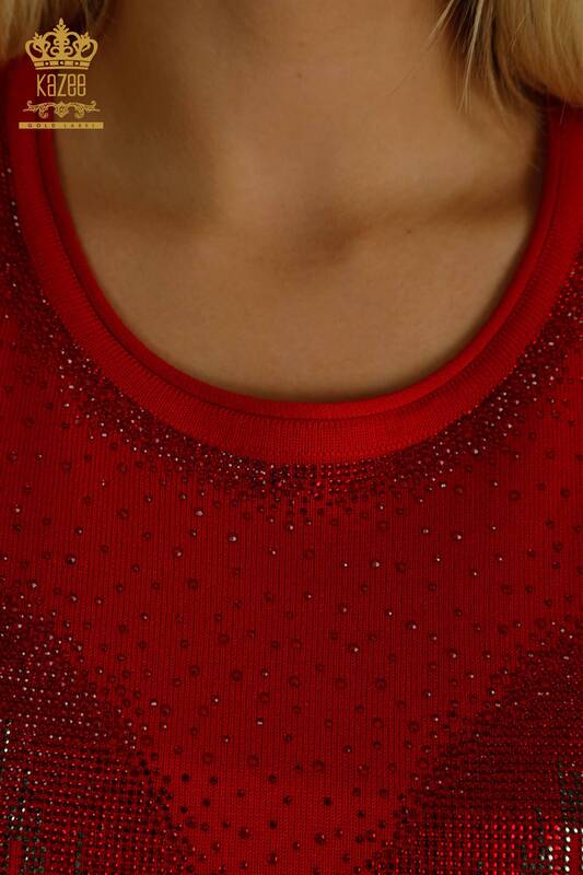 Grossiste Tricots Femmes Pull Crystal Stone Brodé Modèle Américain Rouge - 30330 | KAZÉE