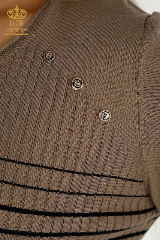 Pull en tricot pour femmes en gros avec détail d'épaule à manches longues Vison-Noir - 30079 | KAZÉE