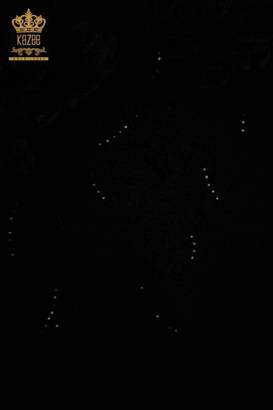 Tricots pour femmes en gros à motifs floraux pierre brodée à manches longues noir - 16849 | KAZÉE