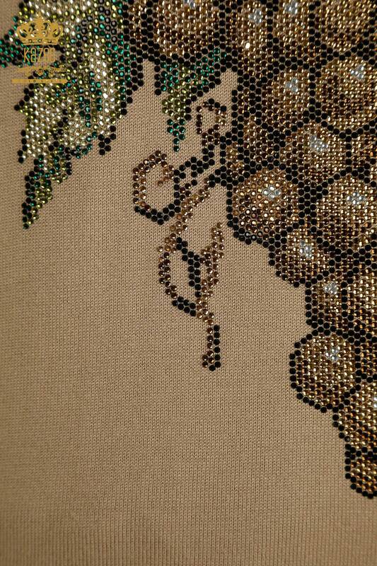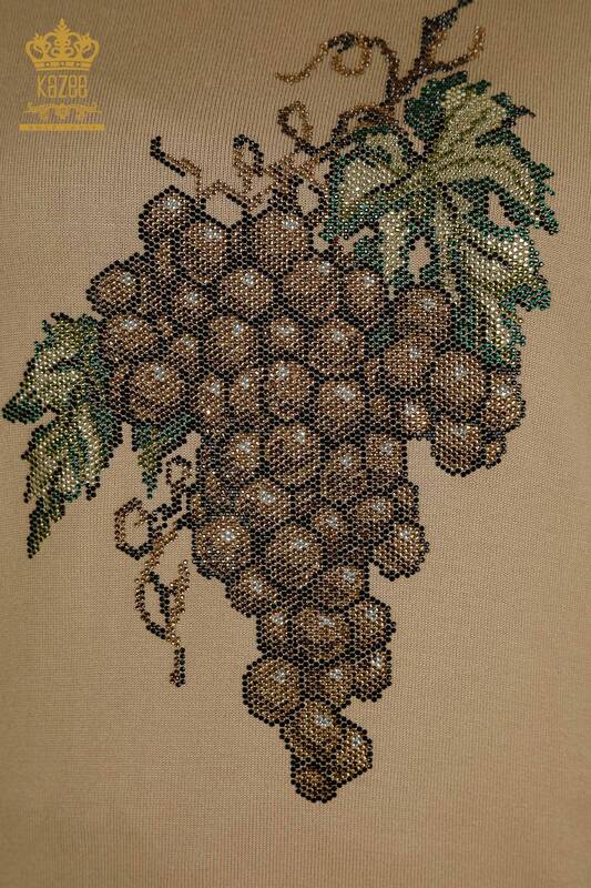 Vente en gros de tricots pour femmes pull raisin à motifs pierre brodée beige - 30488 | KAZÉE