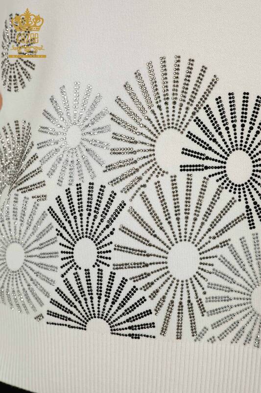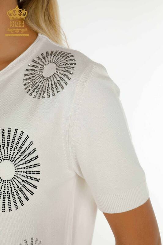Grossiste Maille Pull Pierre Brodée Manches Courtes Ecru - 30318 | KAZÉE