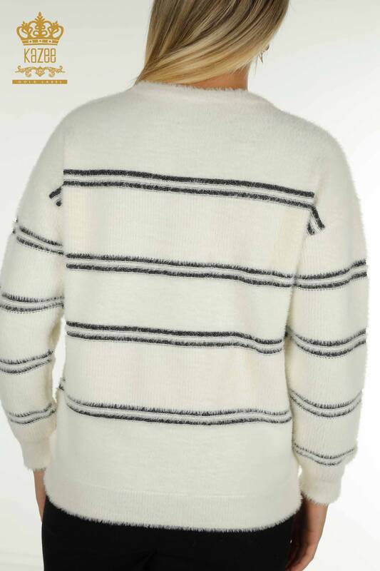 Grossiste Maille Pull Rayé Angora Glitter Transition Ecru - 30680 | KAZÉE