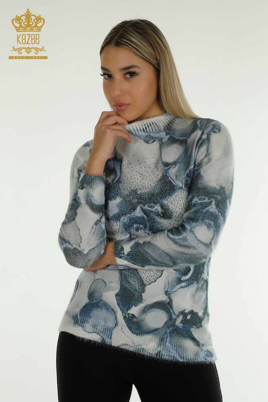 Pull en tricot pour femmes en gros Angora Stone brodé numérique - 40025 | KAZÉE