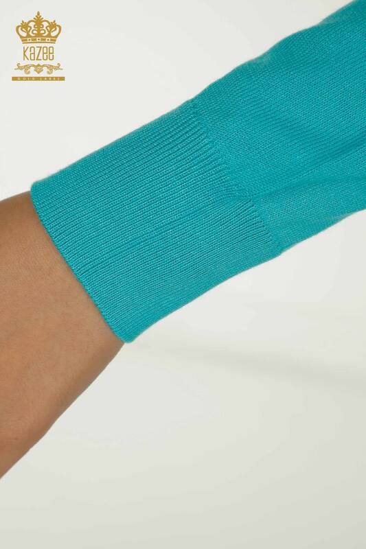 Pull en tricot pour femmes en gros Basic Logo Crew Neck Turquoise - 11052 | KAZÉE