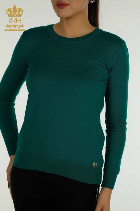 Pull en tricot pour femmes en gros avec logo basique col rond vert - 11052 | KAZÉE