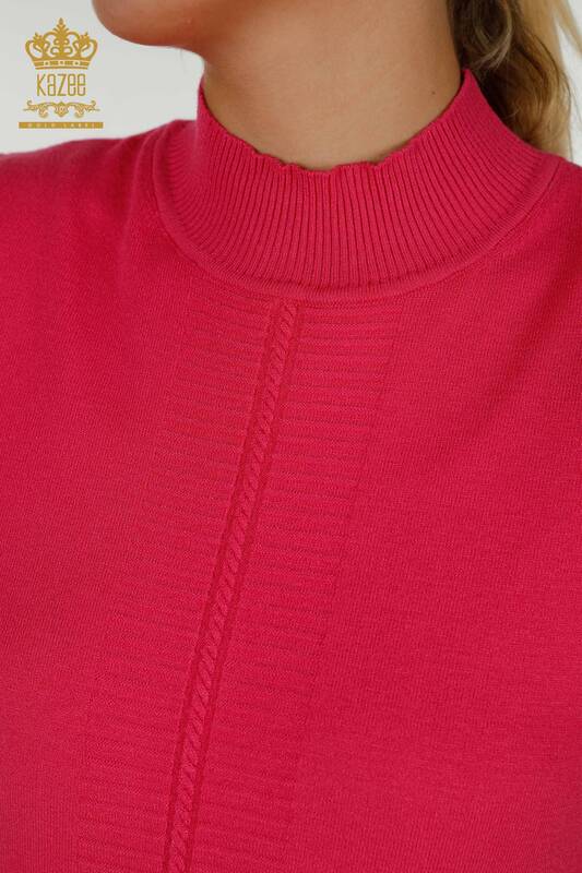 Vente en gros de tricots pour femmes pull basique à manches courtes col montant Fuchsia - 30334 | KAZÉE