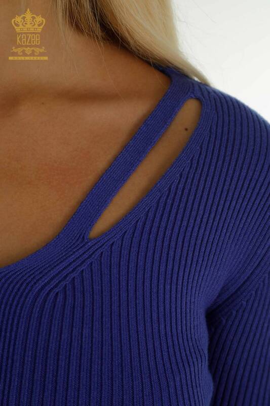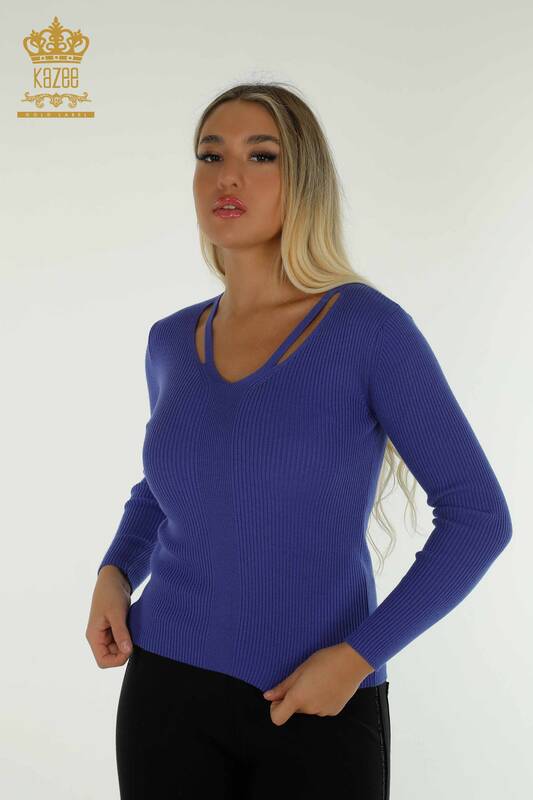 Pull en tricot pour femmes en gros avec détail de col Basic Violet - 30392 | KAZÉE