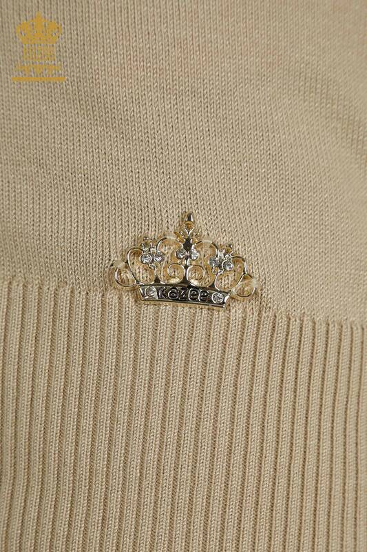 Vente en gros de tricots pour femmes pull col haut basique avec logo beige clair - 30613 | KAZÉE