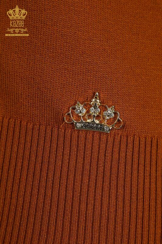 Grossiste Tricots Pull Col Haut Basic Logo Tan - 30613 | KAZÉE
