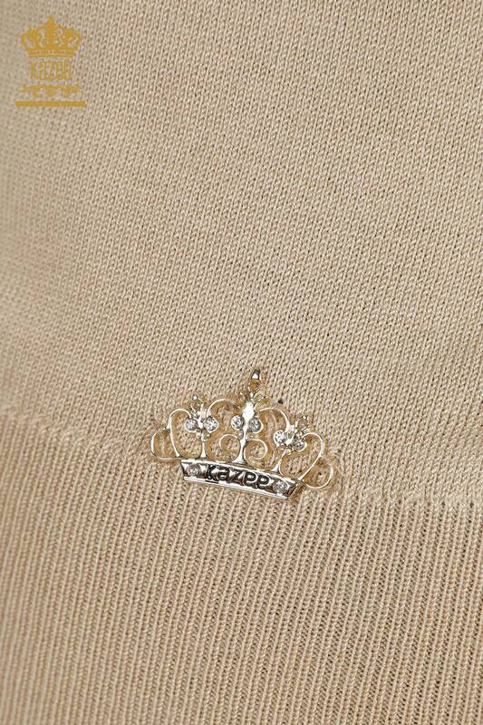 Pull en tricot pour femmes en gros avec détail de bouton de manchette Beige clair de base - 30508 | KAZÉE