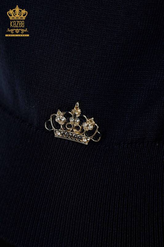Pull en tricot pour femmes en gros avec bouton de manchette détail bleu marine de base - 30508 | KAZÉE
