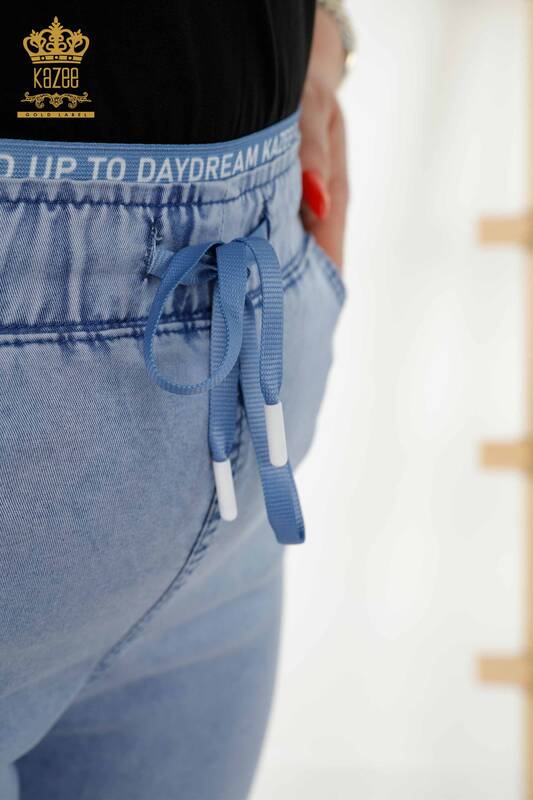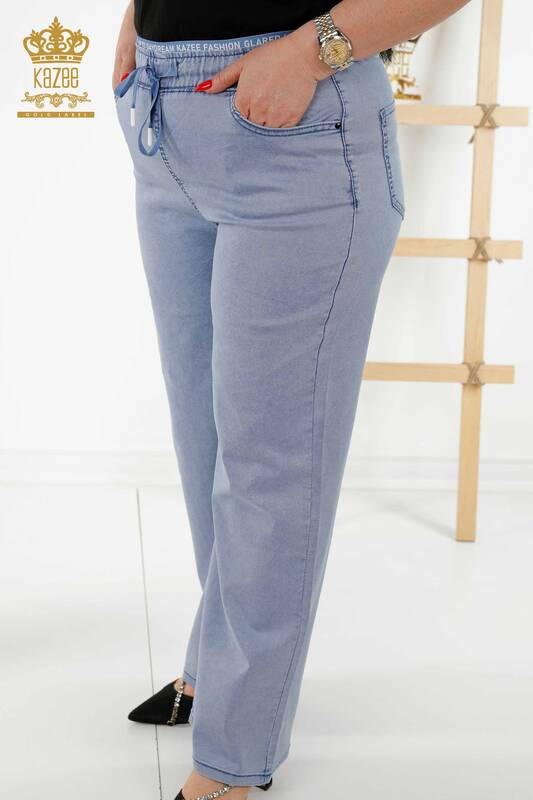 Grossiste Pantalon Femme Avec Poche Taille Élastique Bleu - 3672 | KAZEE