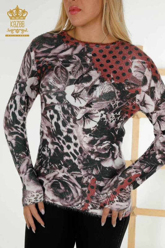 Grossiste Pull en Maille Femme Angora Stone Brodé à Motifs Marron - 16000 | KAZEE