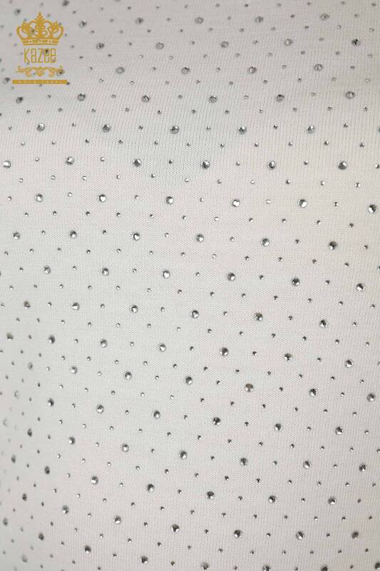 Grossiste Pull Femme Maille Manches Courtes Pierre Brodée Ecru - 16950 | KAZEE