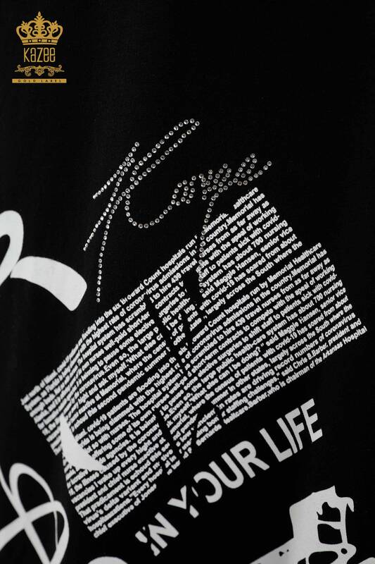 en gros Robe Femme Avec Poche En Cuir Détaillée Pierre Brodée Noir - 20366 | KAZEE