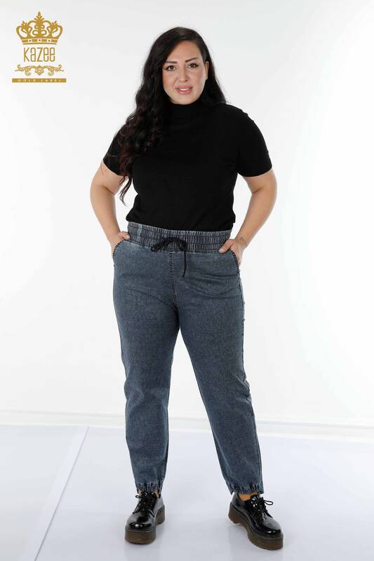 Pantalon Taille Élastique Femme Avec Poches Marine - 3501 | KAZEE