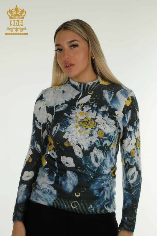 Pull en tricot pour femmes en gros Angora à manches longues avec pierre brodée numérique - 40041 | KAZÉE