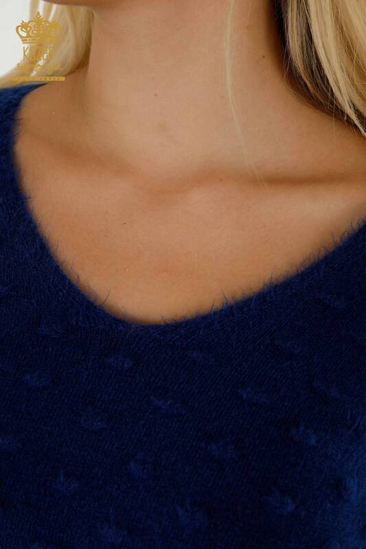 Pull en tricot pour femmes en gros Angora à motifs ras du cou Saks - 18474 | KAZÉE