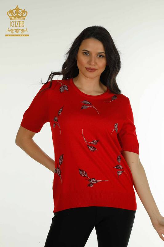 Grossiste Tricots Femme Pull Modèle Américain Pierre Brodée Rouge - 30649 | KAZÉE