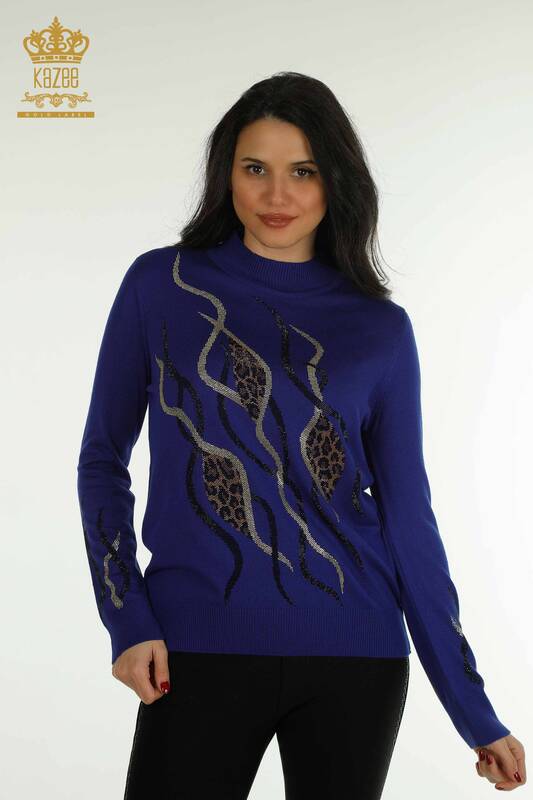 Pull en tricot pour femmes en gros pierre brodée à manches longues Saks - 30096 | KAZÉE