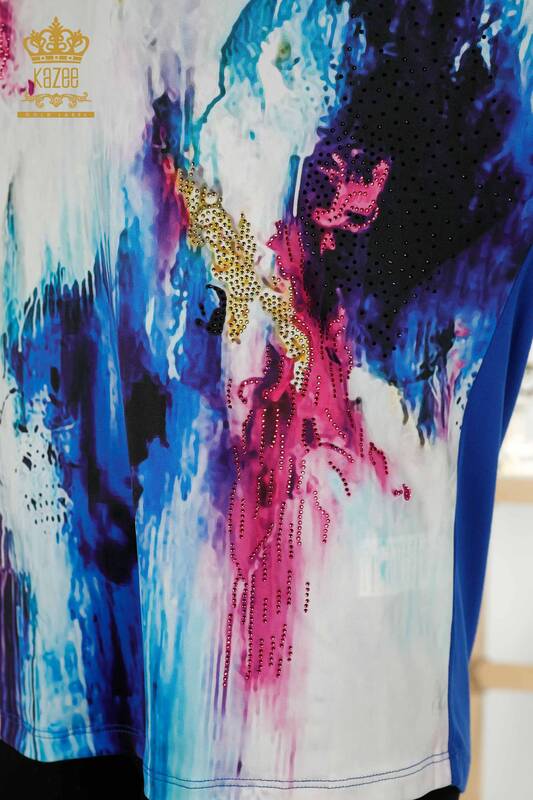 Grossiste Chemisier Femme Manches Courtes Pierre Brodee Numérique - 12087 | KAZEE