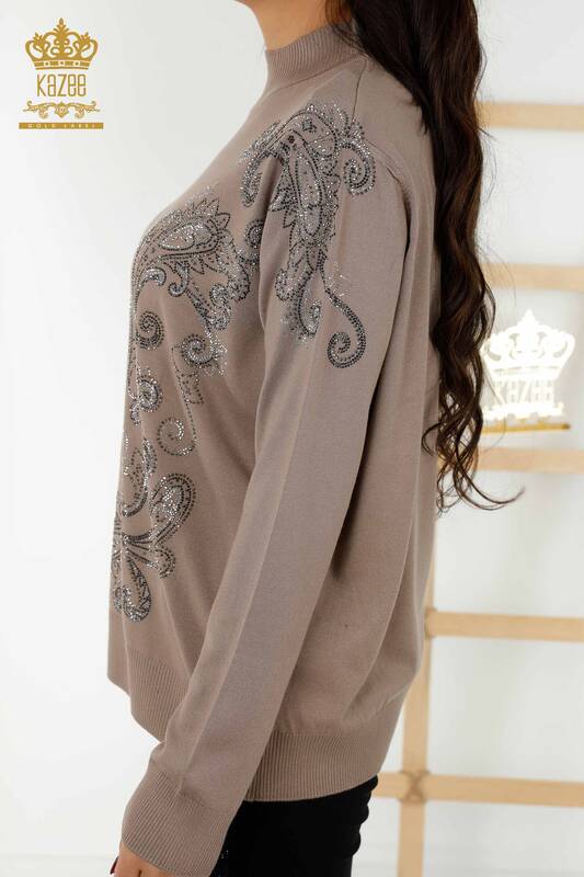 Vente en gros de pull en tricot pour femmes à motifs de vison brodé de pierre de cristal - 30013 | KAZEE