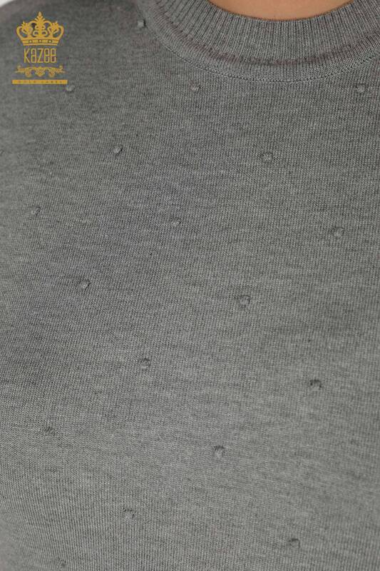 Grossiste Pull Tricot Femme Modèle Américain Col Montant Gris - 30131 | KAZEE
