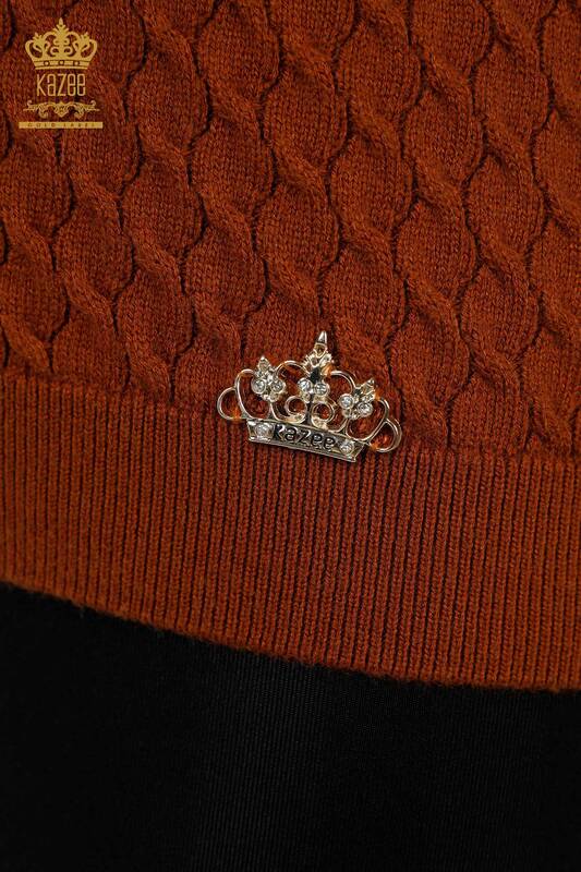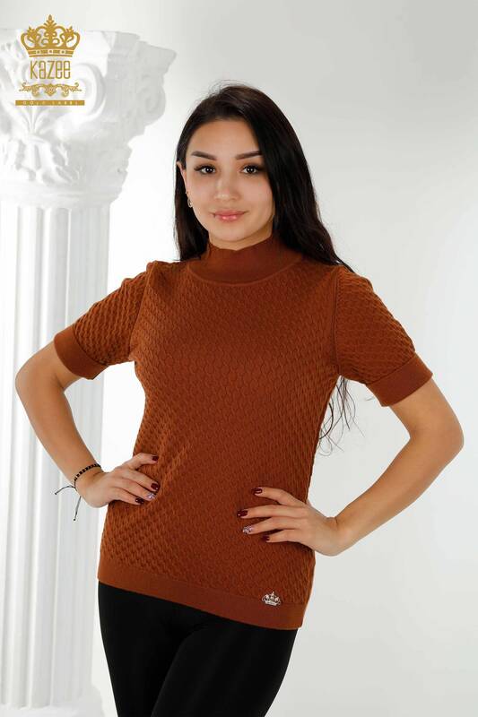 Vente en gros de pull en maille pour femmes American Model Basic Logo Tan - 30119 | KAZEE