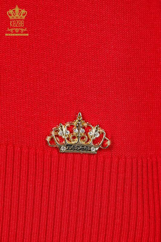Grossiste Pull en Tricot Femme American Model Basic Logo Coral - 15943 | KAZEE