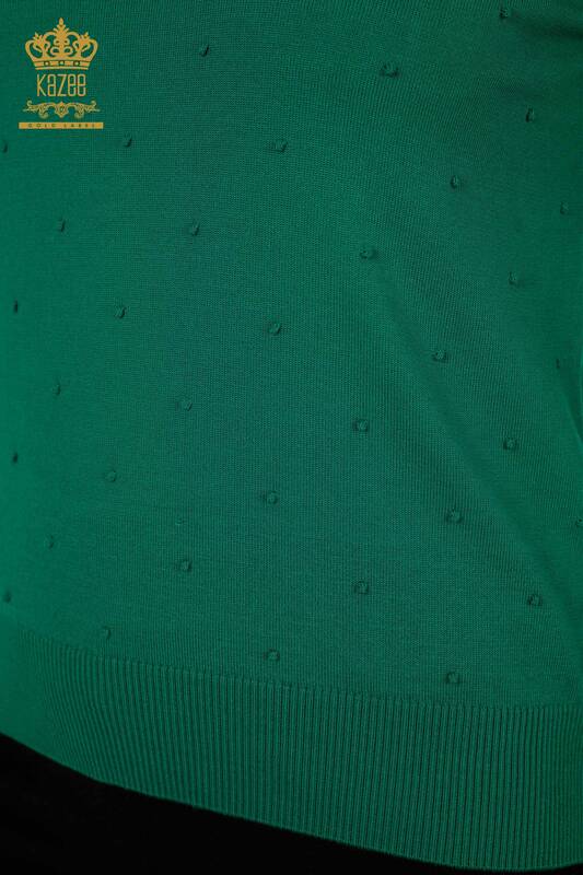 Grossiste Pull Tricot Femme Modèle Américain Col Montant Vert - 30131 | KAZEE