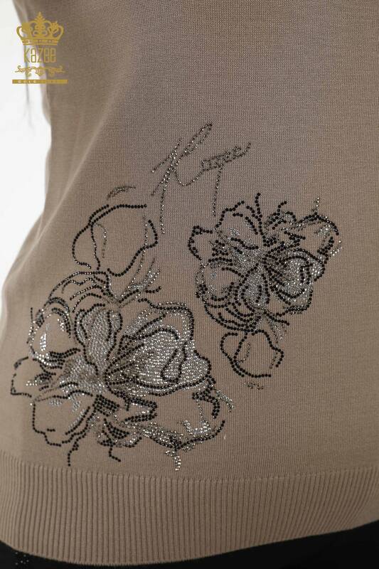 Vente en gros de pull en tricot pour femme à motifs floraux en vison brodé de pierre - 30152 | KAZEE