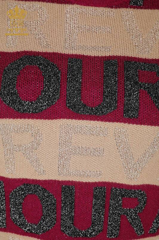 Vente en gros de pull en maille pour femmes ras du cou texte détaillé violet - 30022 | KAZEE