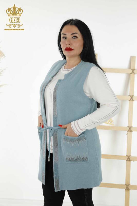 Vente en gros de femmes gilet cristal pierre brodé poche fil noué menthe - 30247 | KAZEE