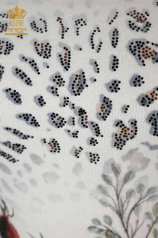 Grossiste Pull en Maille pour Femme Imprimé Numérique Pierre Brodée à Motif Ecru - 18978 | KAZEE