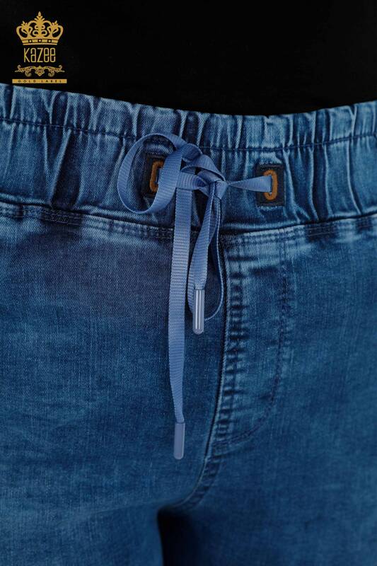 Gros Jeans Femme Bleu Poche Élastique à la Taille - 3698 | KAZEE